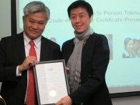 证书颁发仪式於2012年1月19日假香港品质保证局内举行,十三家参与该计划的公司代表出席领取证书。仪式由香港客户中心协会主席赵志洋太平绅士及协会总干事陈建年先生致词开始。词中,他们指出是次计划目的在於为业界订定一个服务标准,提升业界的整体服务质素及形象,为日後业界的持续发展建立基础。接着大会便开始颁发证书给各企业代表。