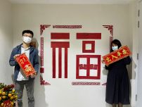 这些小型挥春贴在墙上,拼出一个巨型的‘福’字!希望每个人的新年愿望都能成真,也寓意易宝和各位同事虎年迎福,2022年有福星高照!